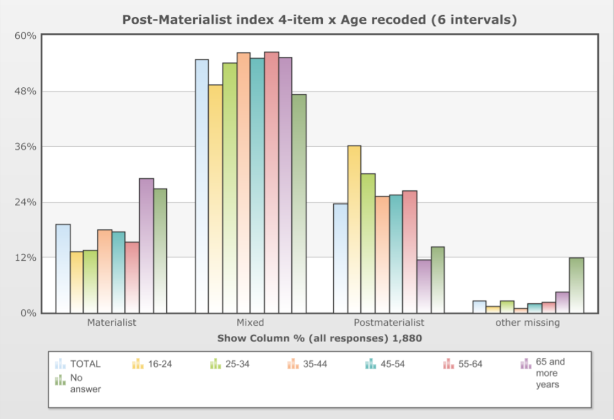 Figure 2: Post-materialist attitudes in France based on age.