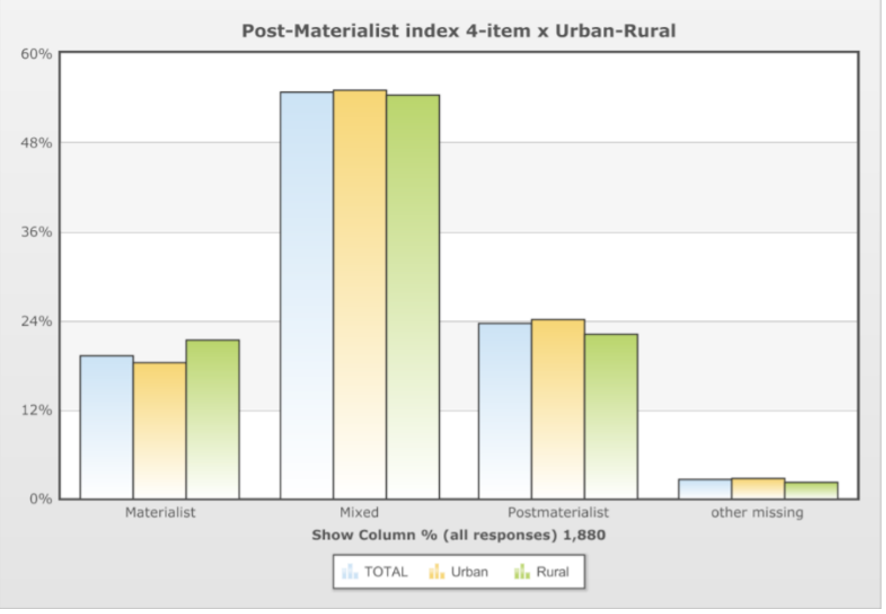 Figure 3: Post-materialist attitudes in France based on rural vs. urban origin.